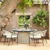 Pienza Outdoor Rattan 6-Seater Round Dining Set, Oatmeal Fabric with Black Frame
