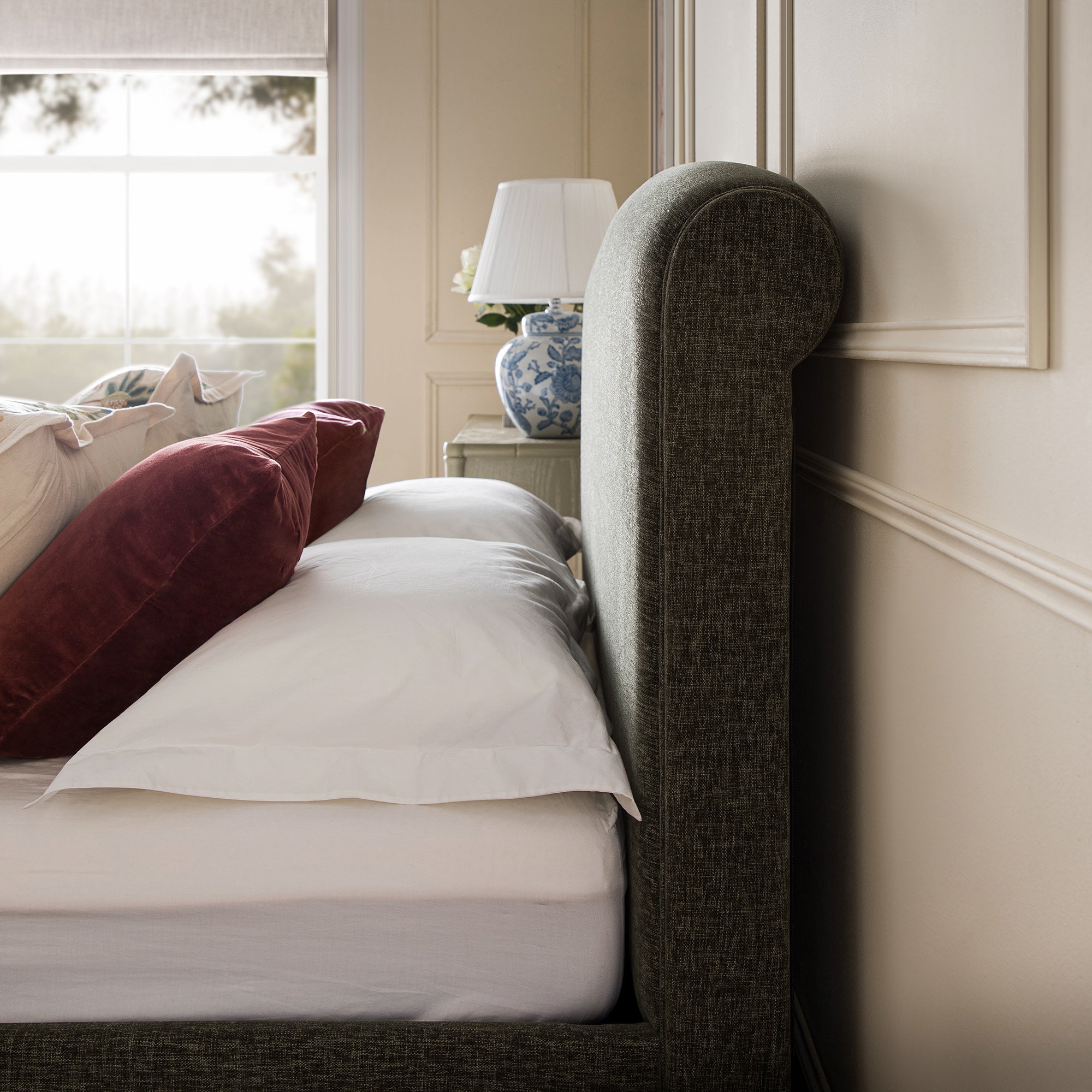 - Defined by its gently arched headboard and elegantly rolled footboard, the Porchester bed embodies timeless refinement.