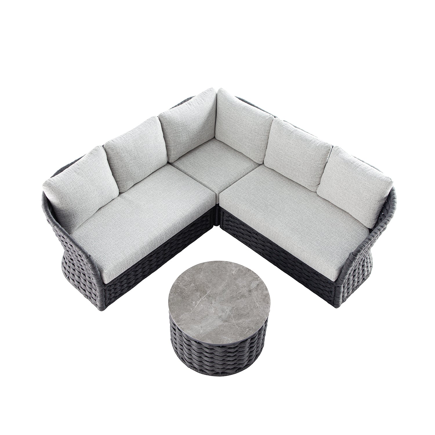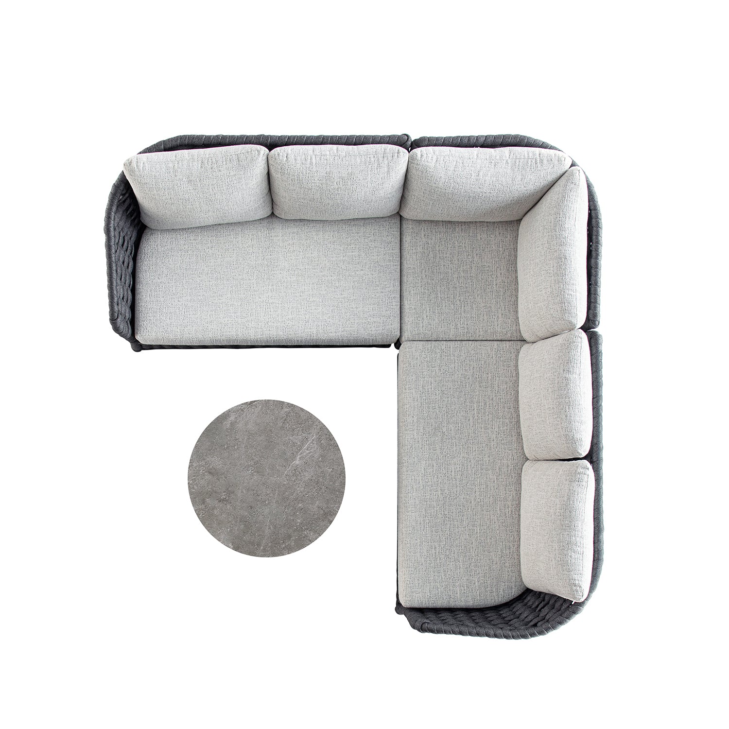 Positano Wide Rope Corner Sofa Set, Grey - daals