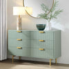 - Ridged door surface finished in trendy sage green matte paint, paired with gold handles and legs give a striking stylish look.