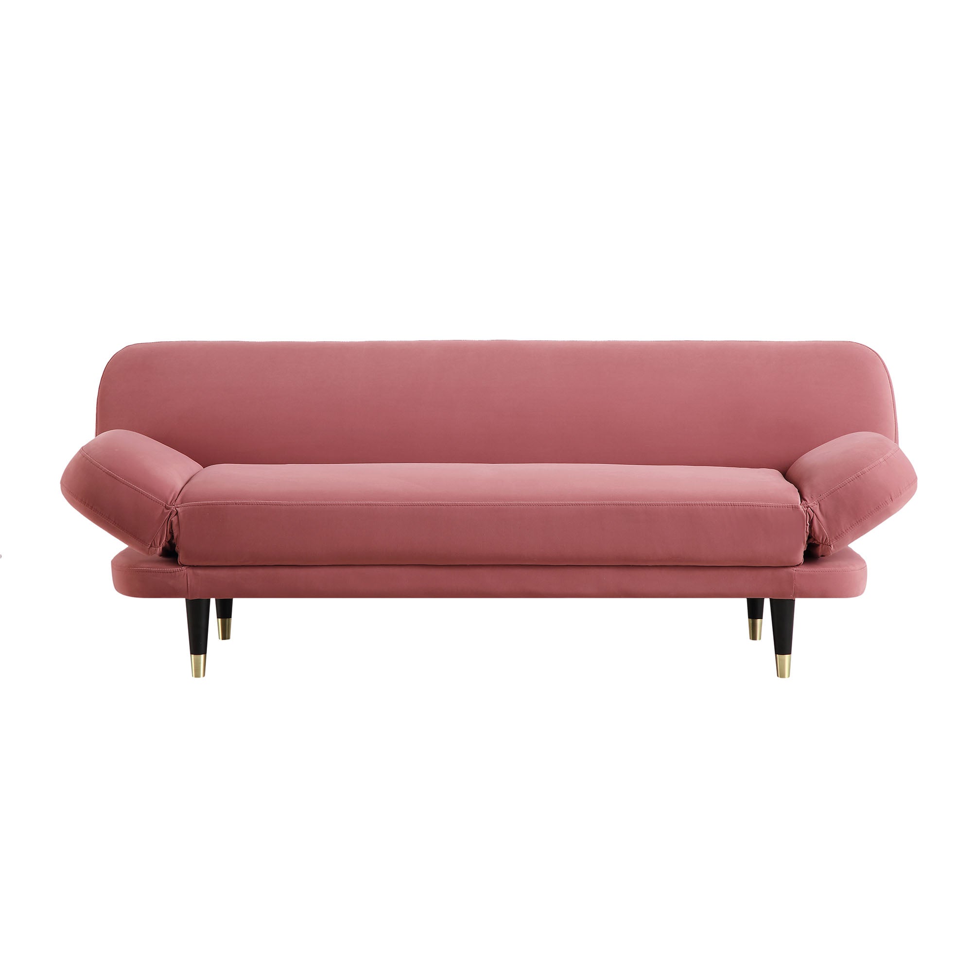 - Upholstered in beautiful dusty rose velvet fabric, our Solna sofa bed is supported by solid wood internal frame, accented with brass tipped black wooden legs for a mid-century look.
