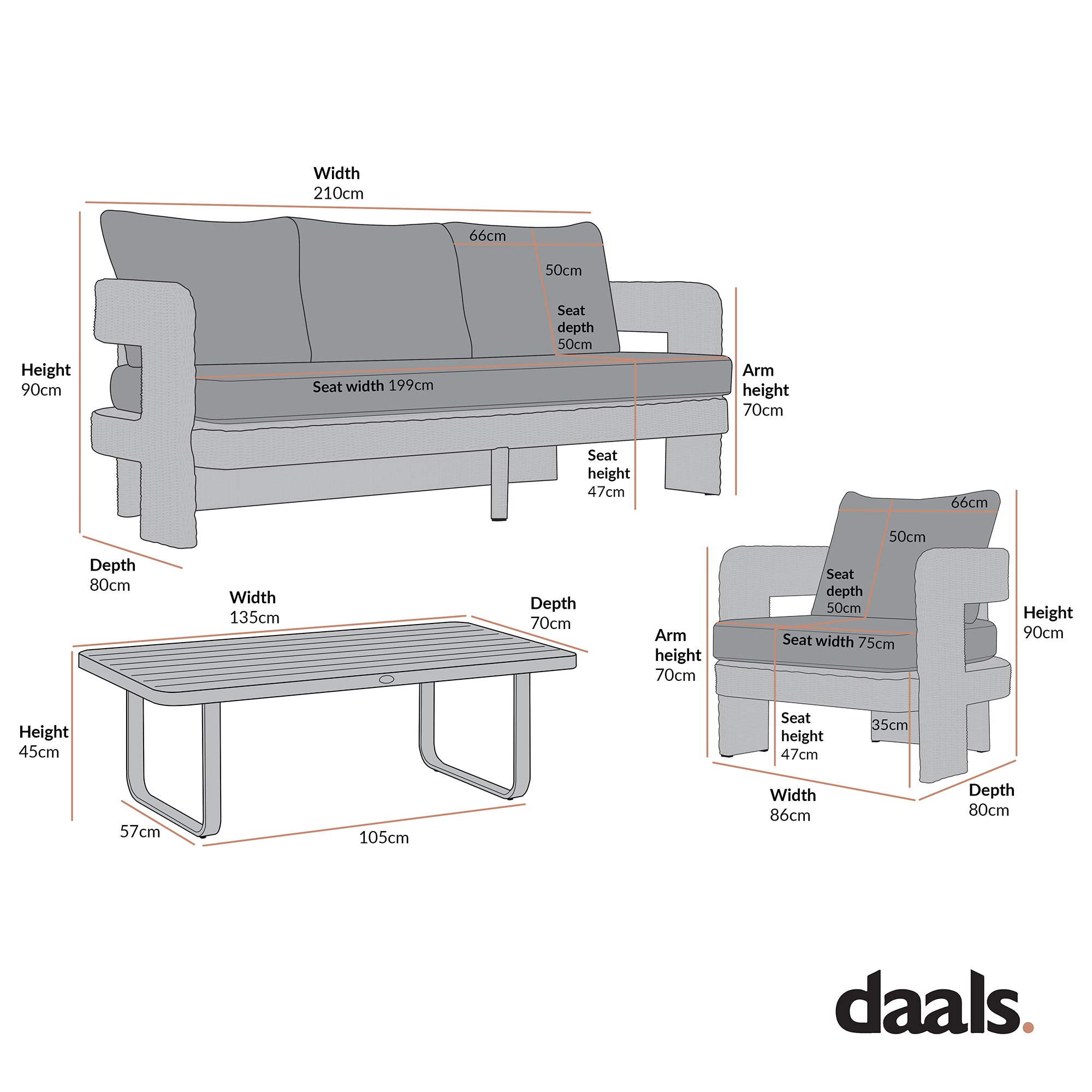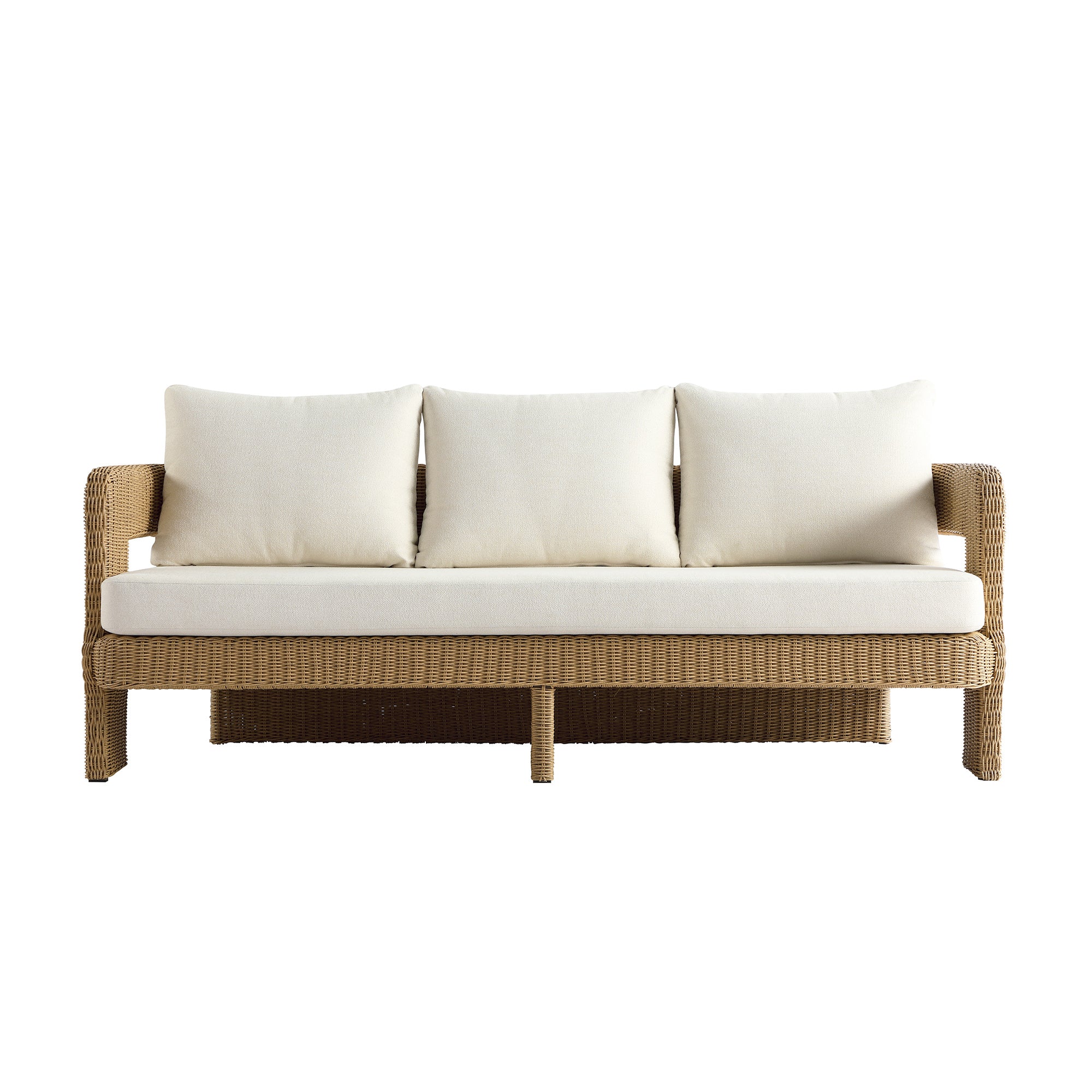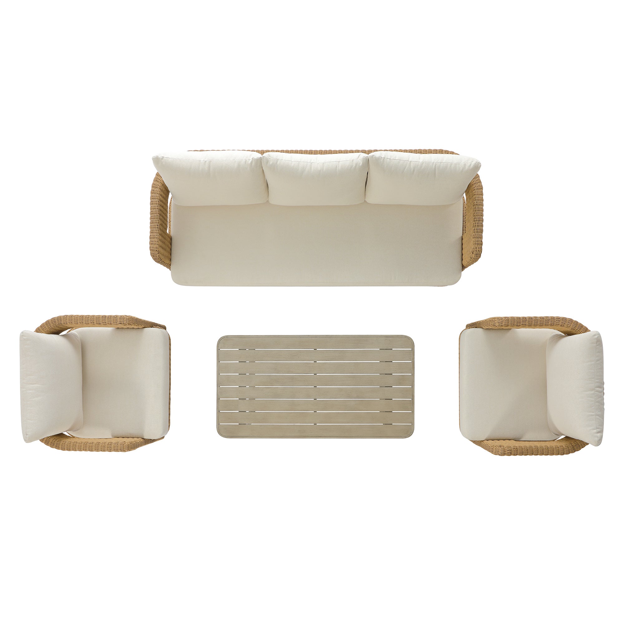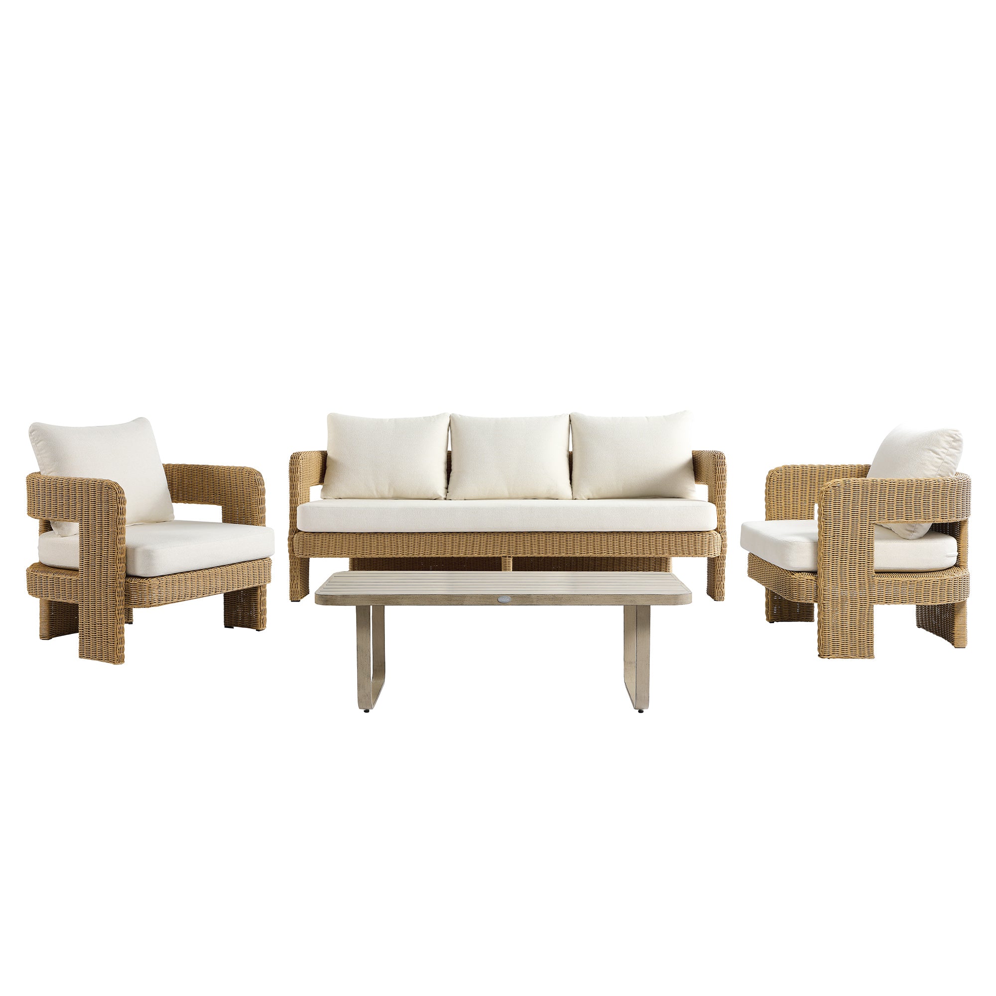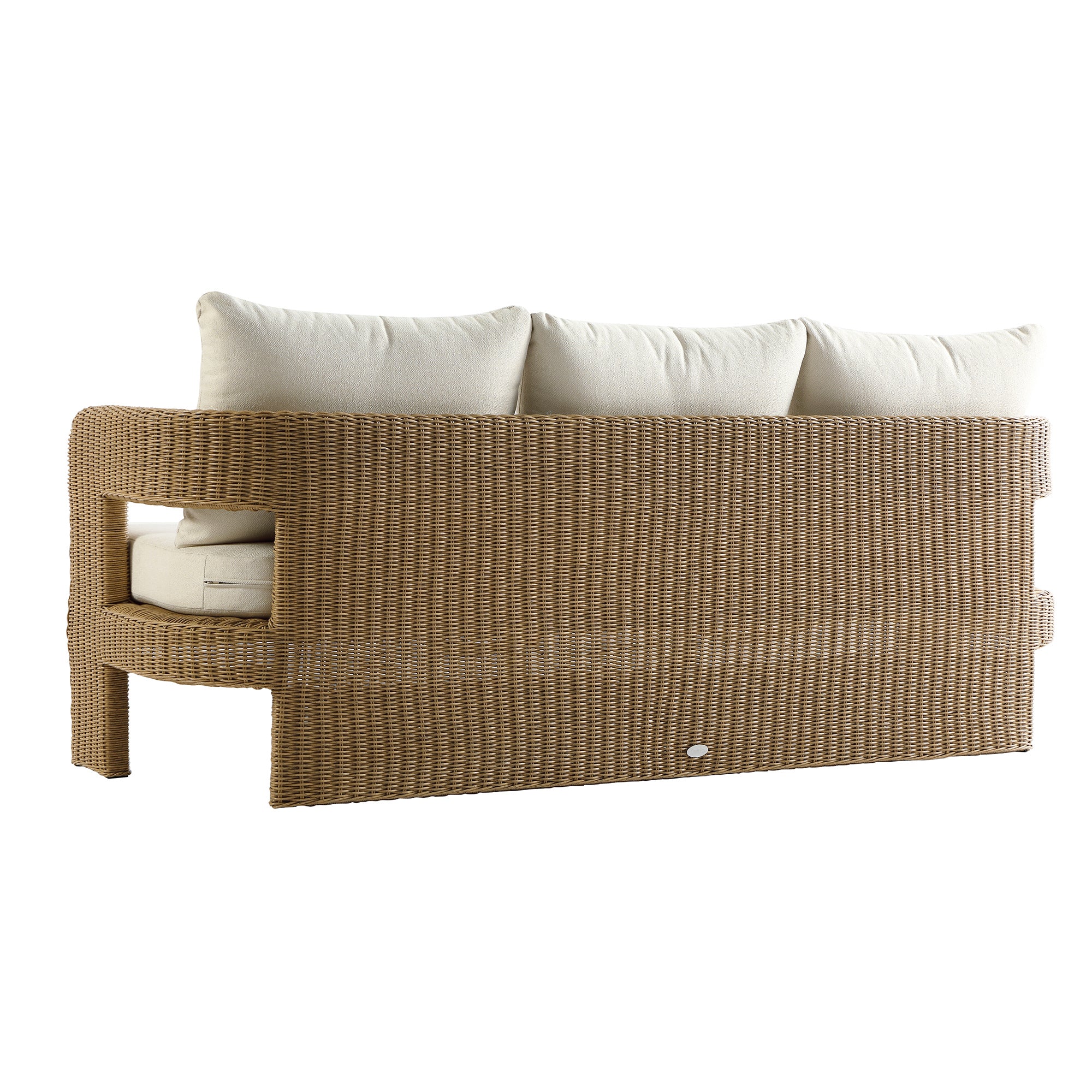 - Featuring a curved sculptural silhouette, the sofa and armchairs are crafted from durable rust-resistant aluminium internal frame with handwoven all-weather round wicker, creating a perfect balance of strength and elegance.