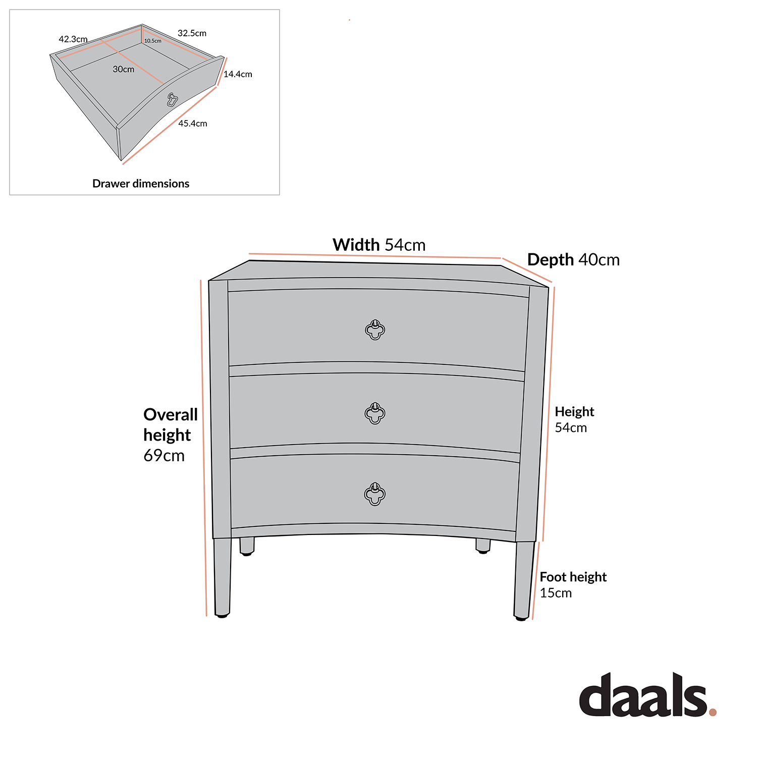 - Drawer internal storage size: W 42.3 x D 30.0 x H 10.5 cm