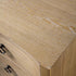 - Gently concave drawer fronts are complemented with the aged brass clove metal handles.
