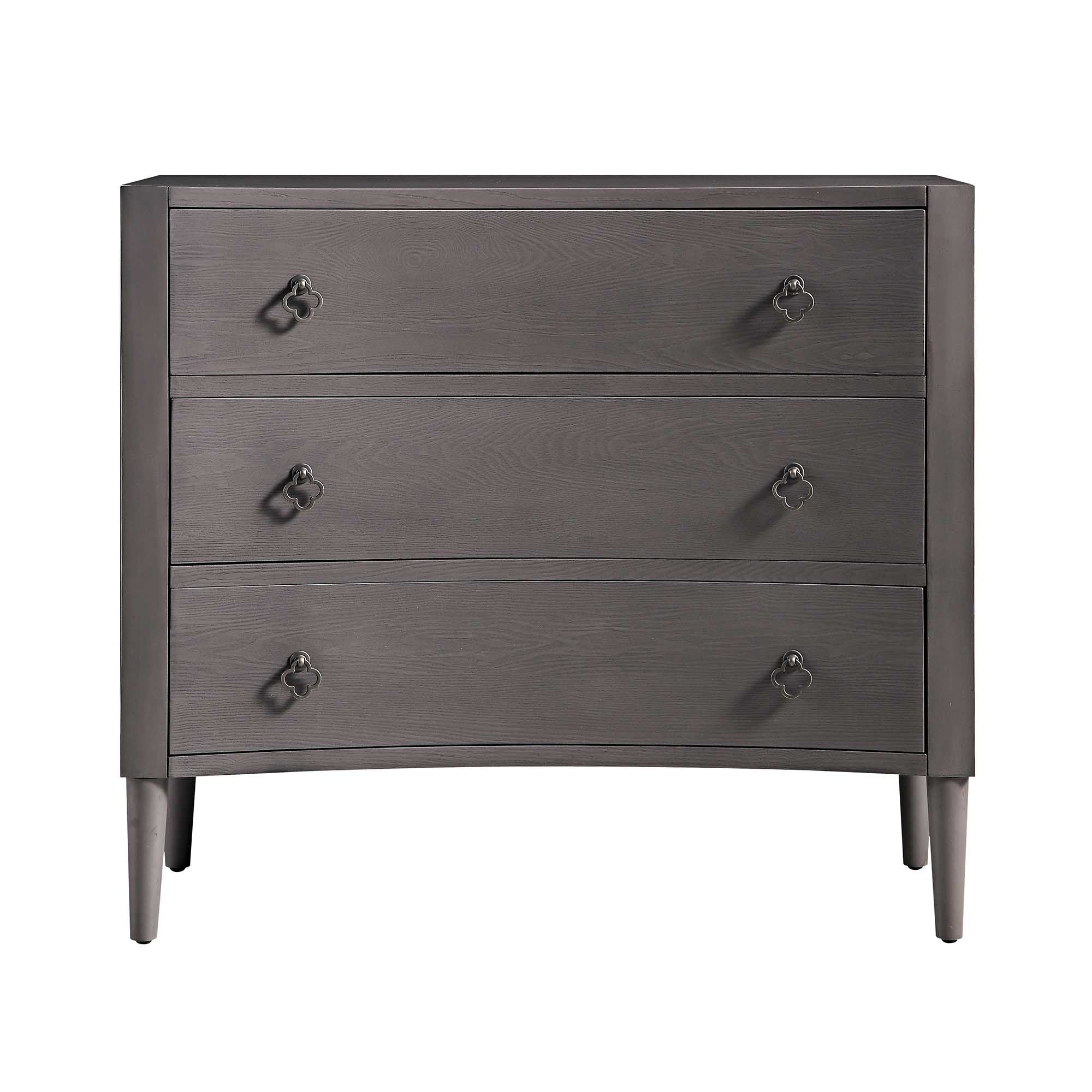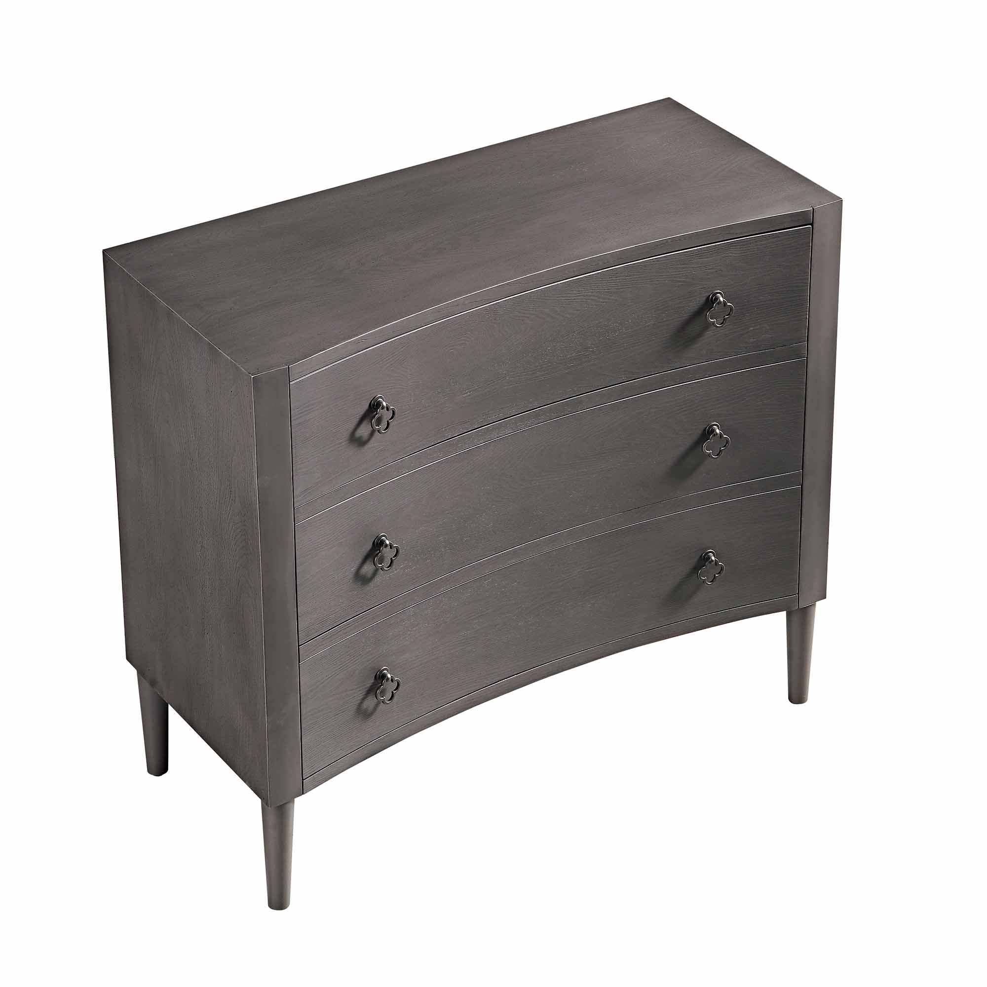 - Featuring distinctive curved design, our Thalia chest of 3 drawers is crafted from solid ash veneer in a silver oak colour finish.