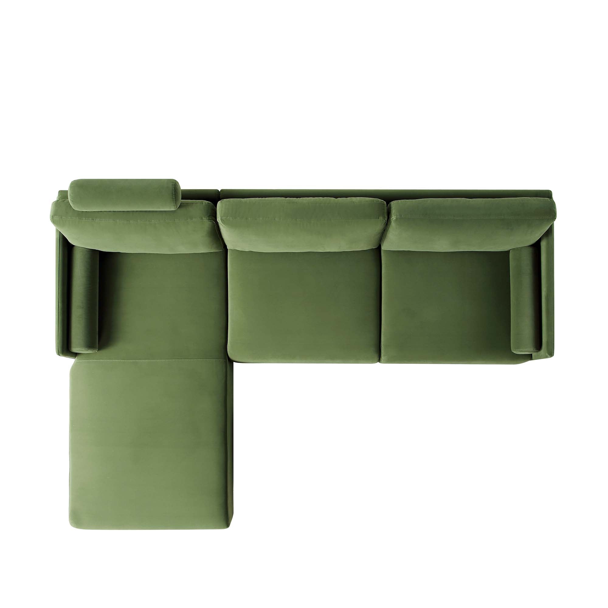 Timber Fern Green Velvet Sofa, Large 3-Seater Chaise Sofa Left Hand Facing
