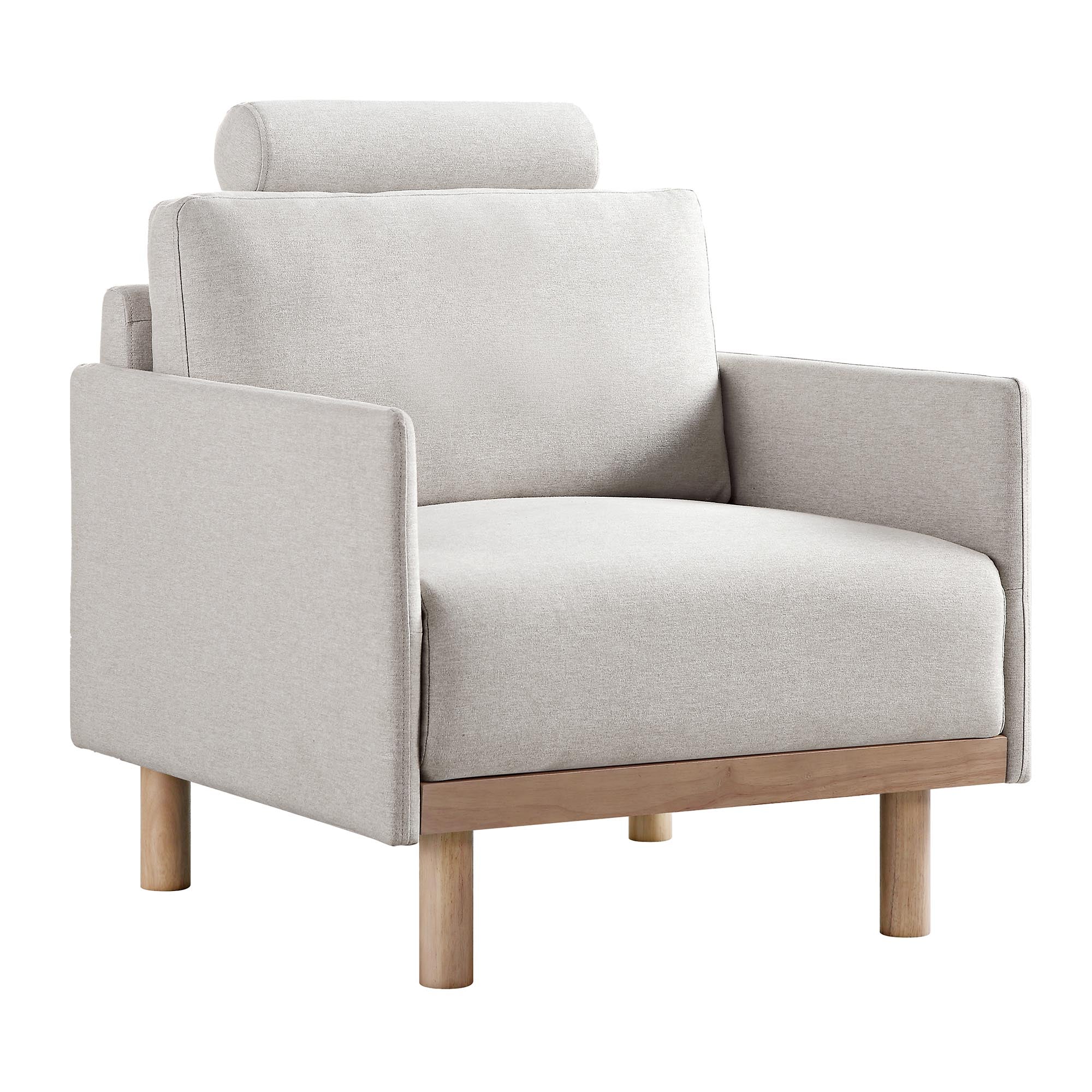 • Upholstered in soft, wool like fabric in oatmeal colour that suits any home decor