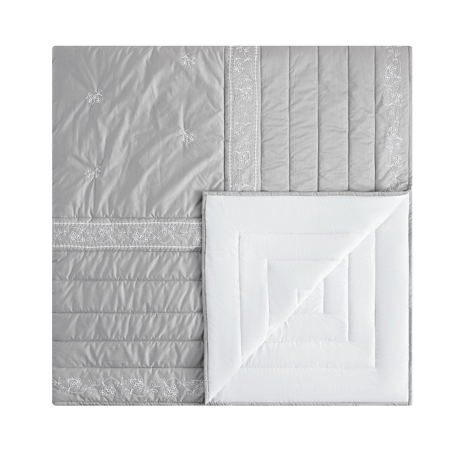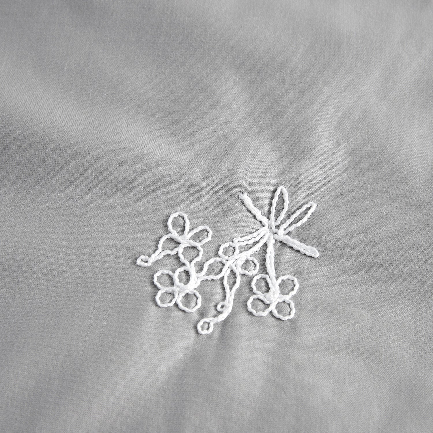 Valentina Grey Floral Embroidered Quilted 600 Thread Count Cotton Sateen Bedspread