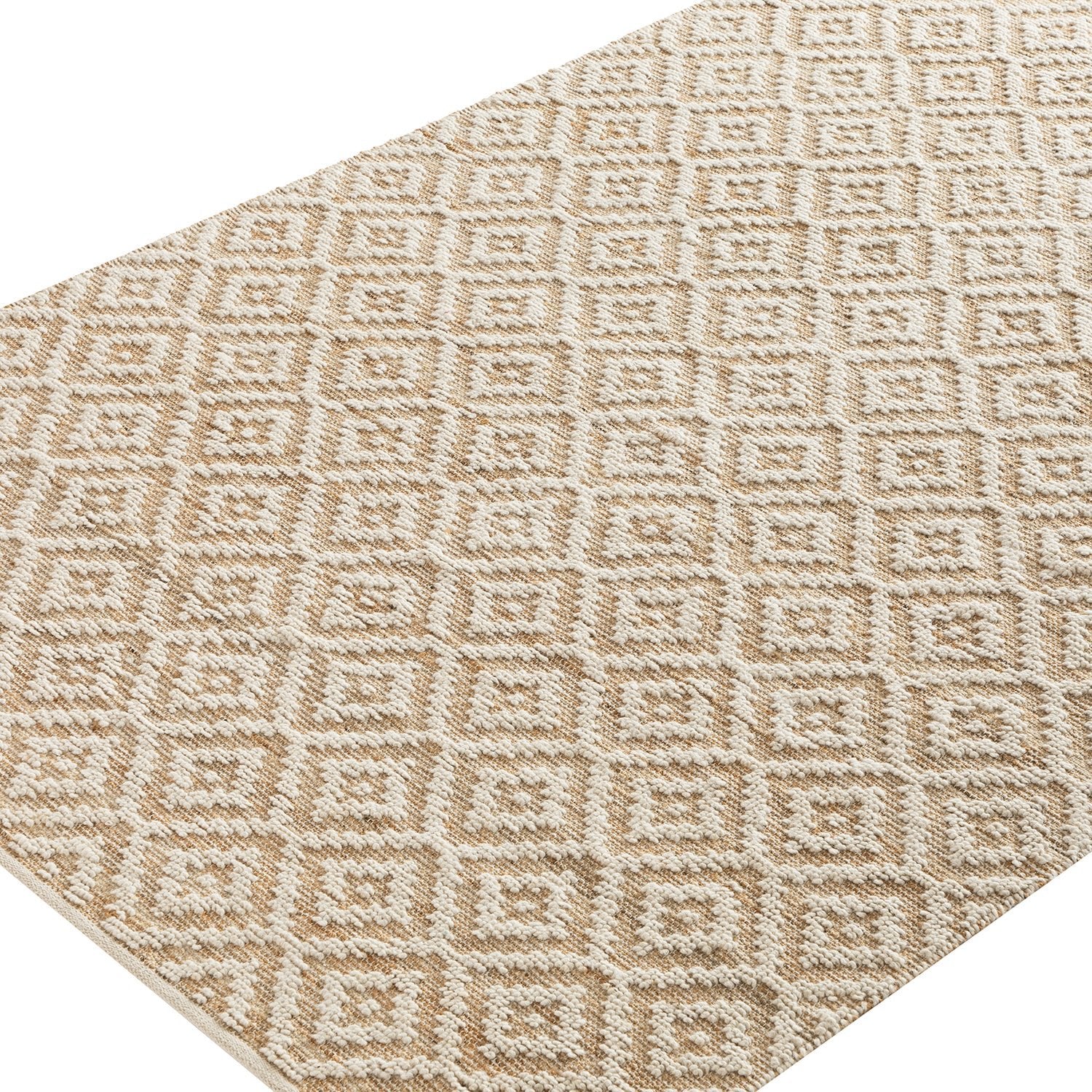 - The Veneta Natural & Ivory White Diamond Handwoven Wool & Jute Rug delivers a striking blend of texture and natural elegance. Its neutral colour scheme complements a wide range of interiors, while its geometric design adds subtle interest to your room.
