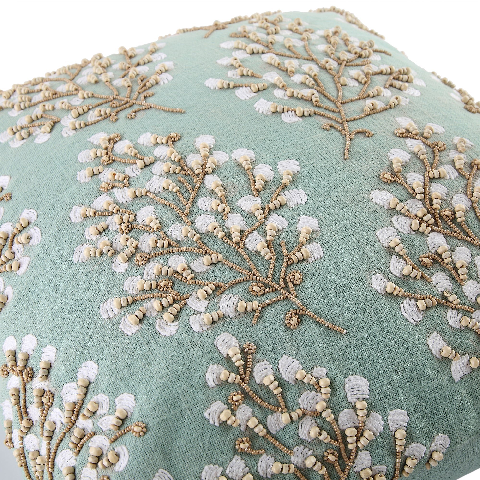 - Forming part of our vine collection, this cushion is sure to add a touch of nature to your home decor, with its beautiful floral design, featuring wooden beads, thick edge tassels and specialised couching stiches in thick Cotton yarn.