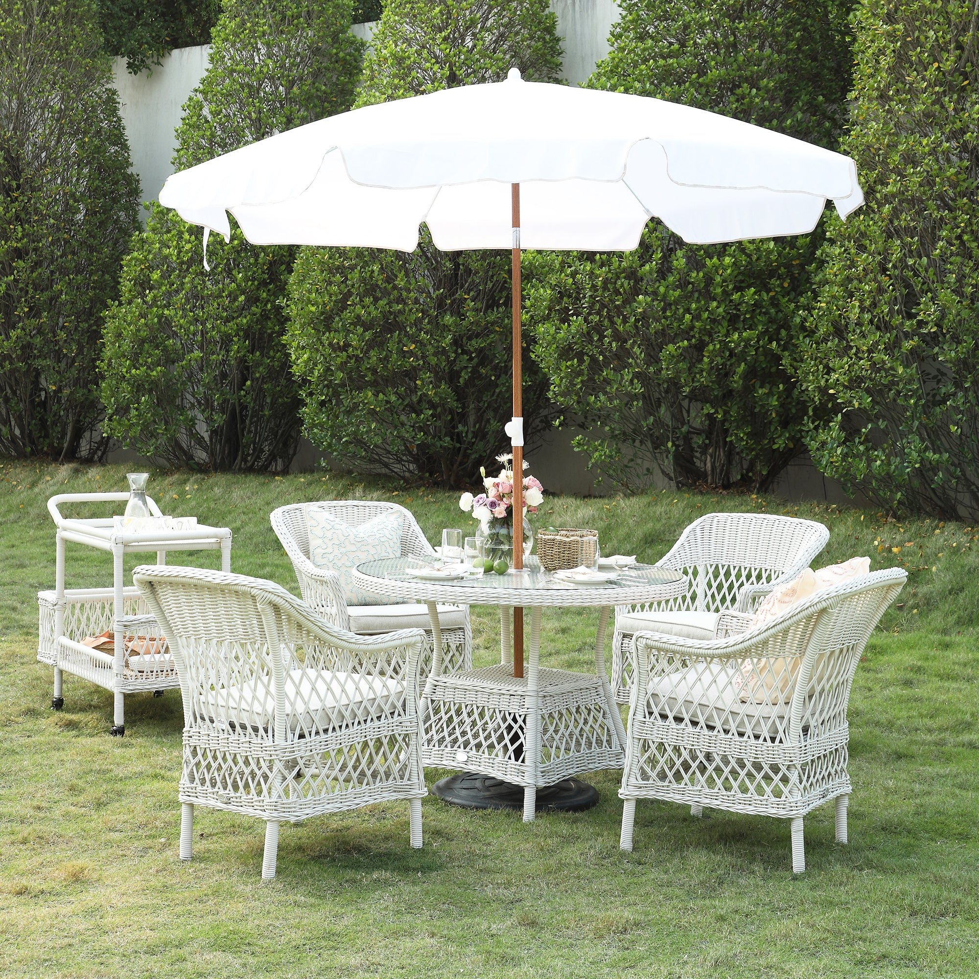 - Thanks to the elegant lattice weave, the set brings a beautiful layer without feeling overly ornate, and blends seamlessly into both classic and contemporary garden settings.