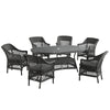 - Featuring robust round poly rattan weaves hand wrapped around aluminium frame, our Willowbrook 6-seater oval dining set offers alfresco dining in elegant style.
