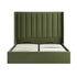 • The padded headboard with vertical tufting complements the sumptuous moss green velvet touch upholstery.