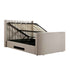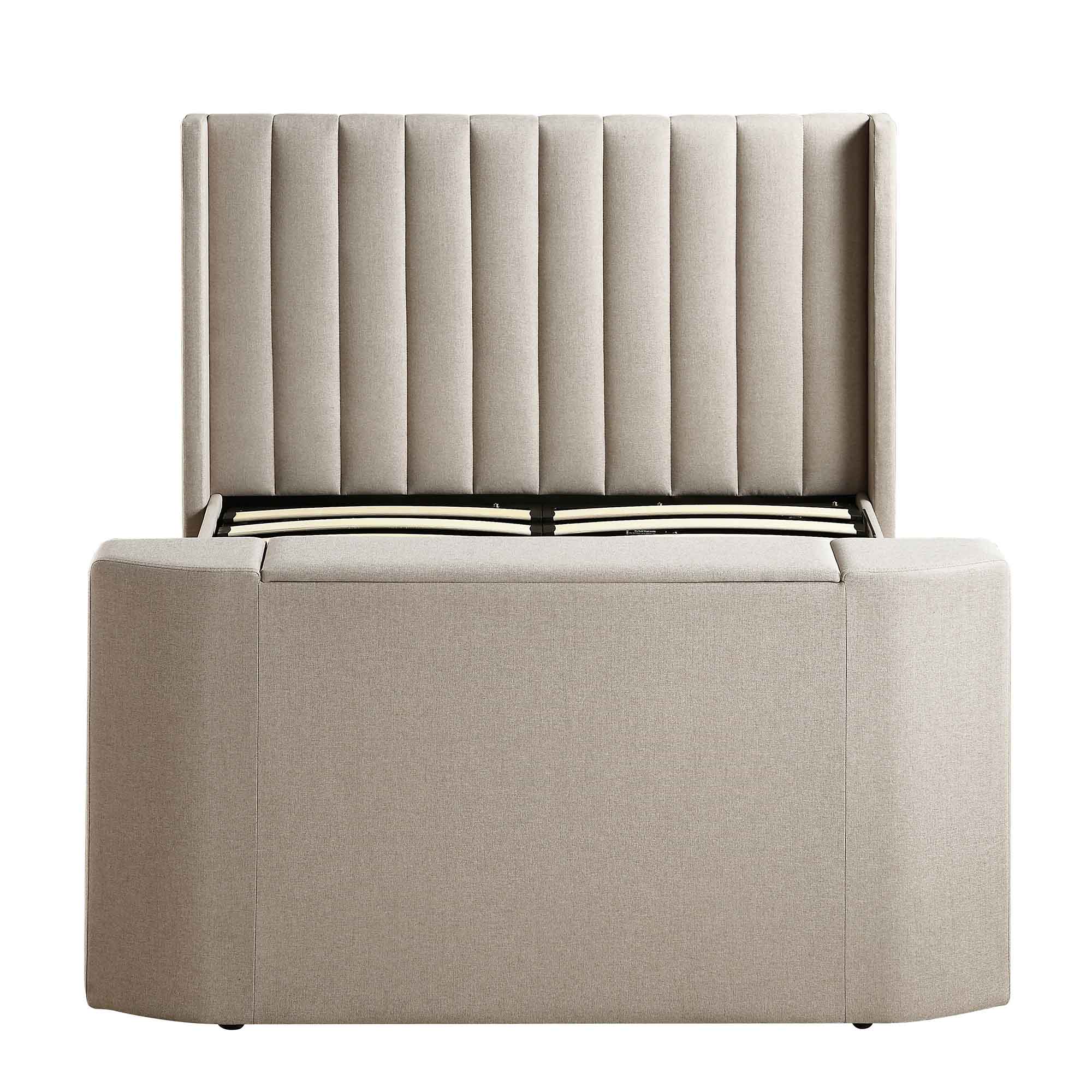 - Complete the look: Pictured with our Wilton Warm Stone Fabric Ottoman TV Bed is our Evie Prussian Blue Linen Blend Cushions and our Avanti Cream Hand Woven Bobble Wool Rug