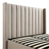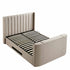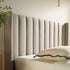 - The padded headboard with vertical tufting pairs perfectly with neutral tone upholstery for a modern, sleek look.