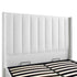 - The padded headboard with vertical tufting pairs perfectly with white upholstery for a modern, sleek look.