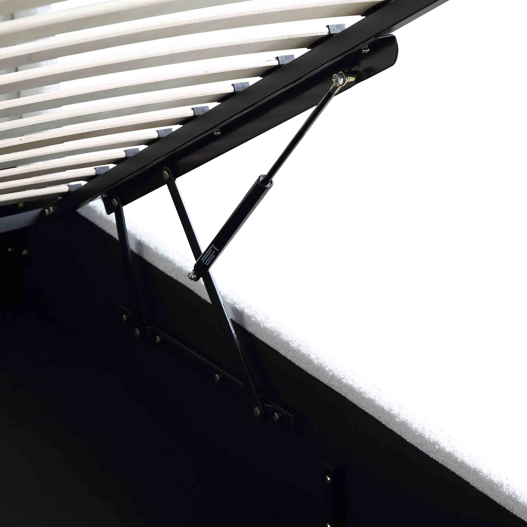 - Complete the look: Pictured with our Wilton White Boucle Ottoman Storage Bed is our Aurora Hand Braided Bronze and Teal Jute Rug